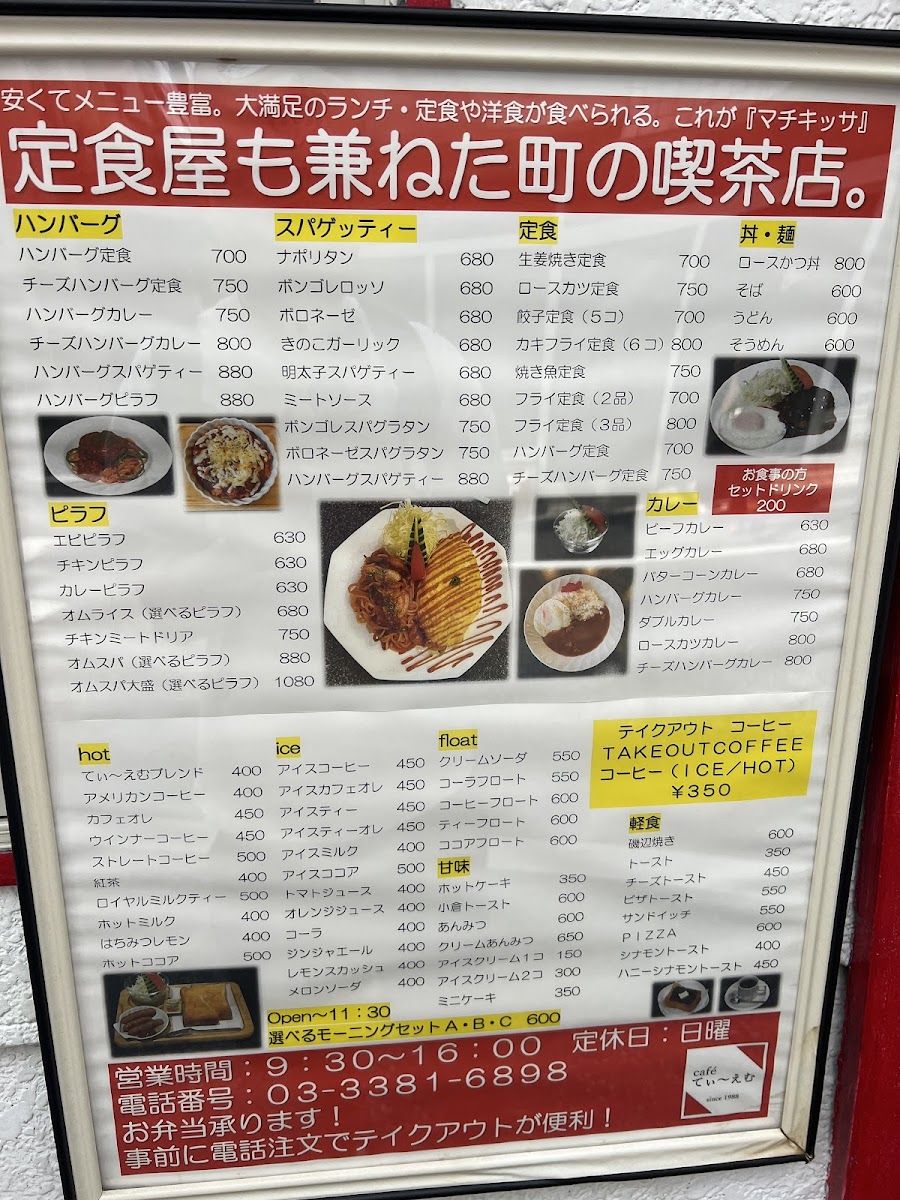 Welcome to Café TM, a charming eatery nestled in the heart of Nakano City, Tokyo. This quaint café offers a delightful escape from the bustling city, with its serene ambiance accentuated by soft jazz music and cozy seating. Café TM specializes in hearty western dishes, featuring a varied lunch menu that's not only plentiful but also budget-friendly. With signature items like their wholesome morning set priced at just 600 yen, diners can relish buttery toast, savory sausages, and fresh salads.